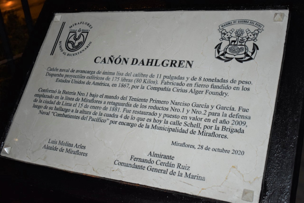Develacion De Placa En El Canon Dahlgren De La Guerra Con Chile Municipalidad De Mirafloresmunicipalidad De Miraflores