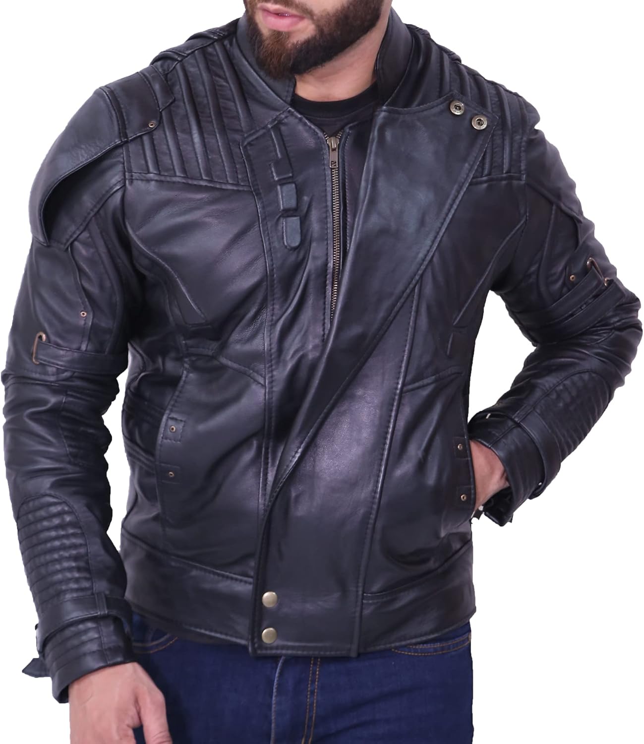 Noills Guardians Of The Star Black Faux Leather Jacket Men Premum Pratt Mens Leather Jacket Black Syntheic Distressed Maroon Leather Superhero Quill Motorcycle Jacket At Amazon Men S Clothing Store